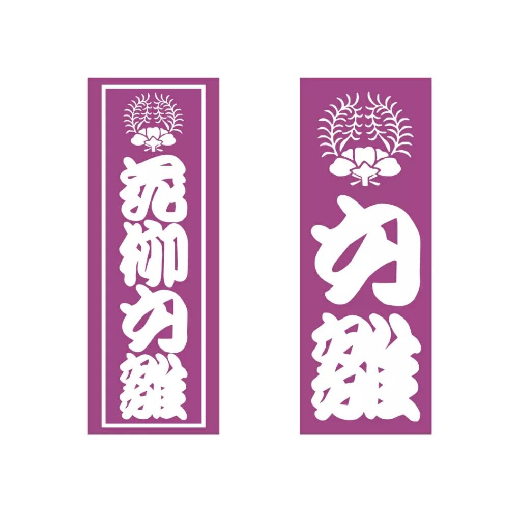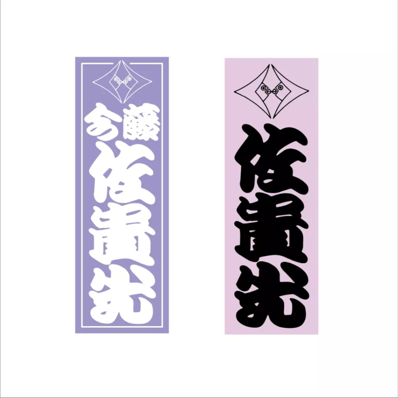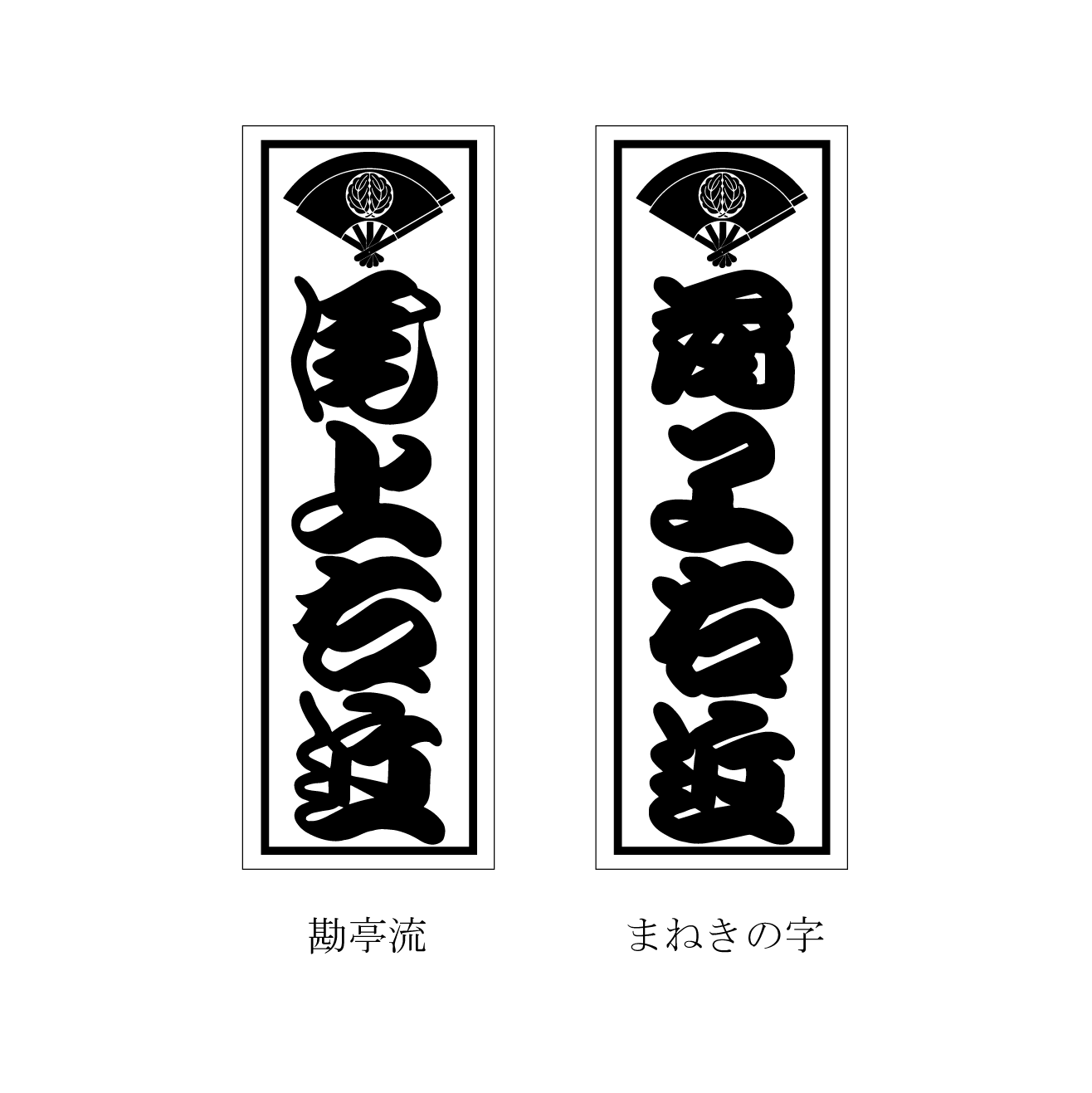 【勘亭流】と【まねきの字】の二種類(参考画像:尾上右近)から書体を選定して頂けます。